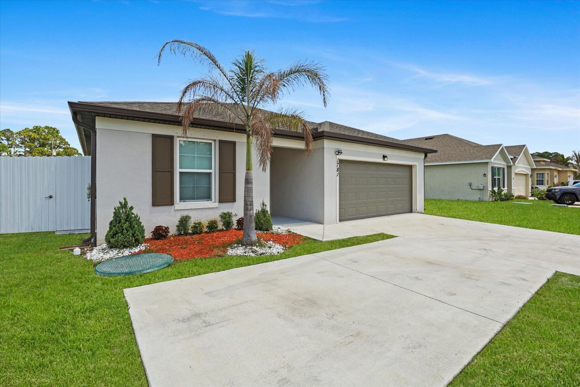 Built in 2023, this move-in ready 3BR/2BA home offers the benefits of newer construction with low maintenance and like-new systems. No HOA. Situated on a corner lot with a 2-car garage and oversized driveway. Features a private suite with dual mini-split A/C systems and soundproofing-ideal as a 4th bedroom, home office, or in-law space. Includes UV light A/C system for improved air quality. Upgrades include fully fenced yard, EV charger, remodeled laundry room, custom primary closet, tinted wind...Built in 2023, this move-in ready 3BR/2BA home offers the benefits of newer construction with low maintenance and like-new systems. No HOA. Situated on a corner lot with a 2-car garage and oversized driveway. Features a private suite with dual mini-split A/C systems and soundproofing-ideal as a 4th bedroom, home office, or in-law space. Includes UV light A/C system for improved air quality. Upgrades include fully fenced yard, EV charger, remodeled laundry room, custom primary closet, tinted windows, and freshly painted interior. Newer roof, A/C, and appliances. Conveniently located minutes from Tradition, I-95, Turnpike, and St. Lucie West shopping and dining. Listing agent is related to owners. All measurements are estimates buyers/agents to verify.